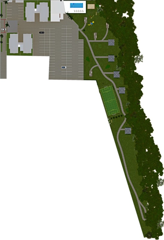 Quiosques e churrasqueiras com sombra das árvores